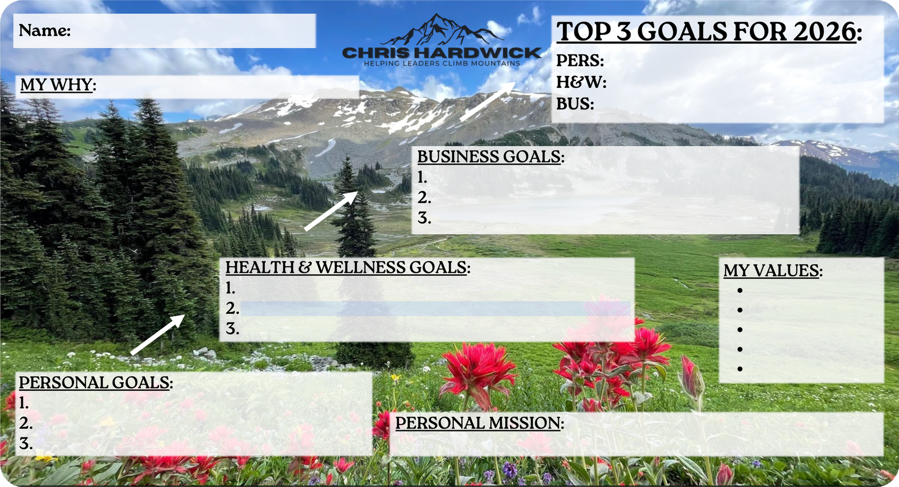 Take 20-30 mins to complete the One-Page Plan, start with your ‘PURPOSE’, clarify your 'PERSONAL MISSION', define your 'VALUES', then determine your top three 'Personal, Health & Wellness, and Business goals'. Print off a copy, post it on the wall in your home office or at work, share it with your partner, family, and colleagues.